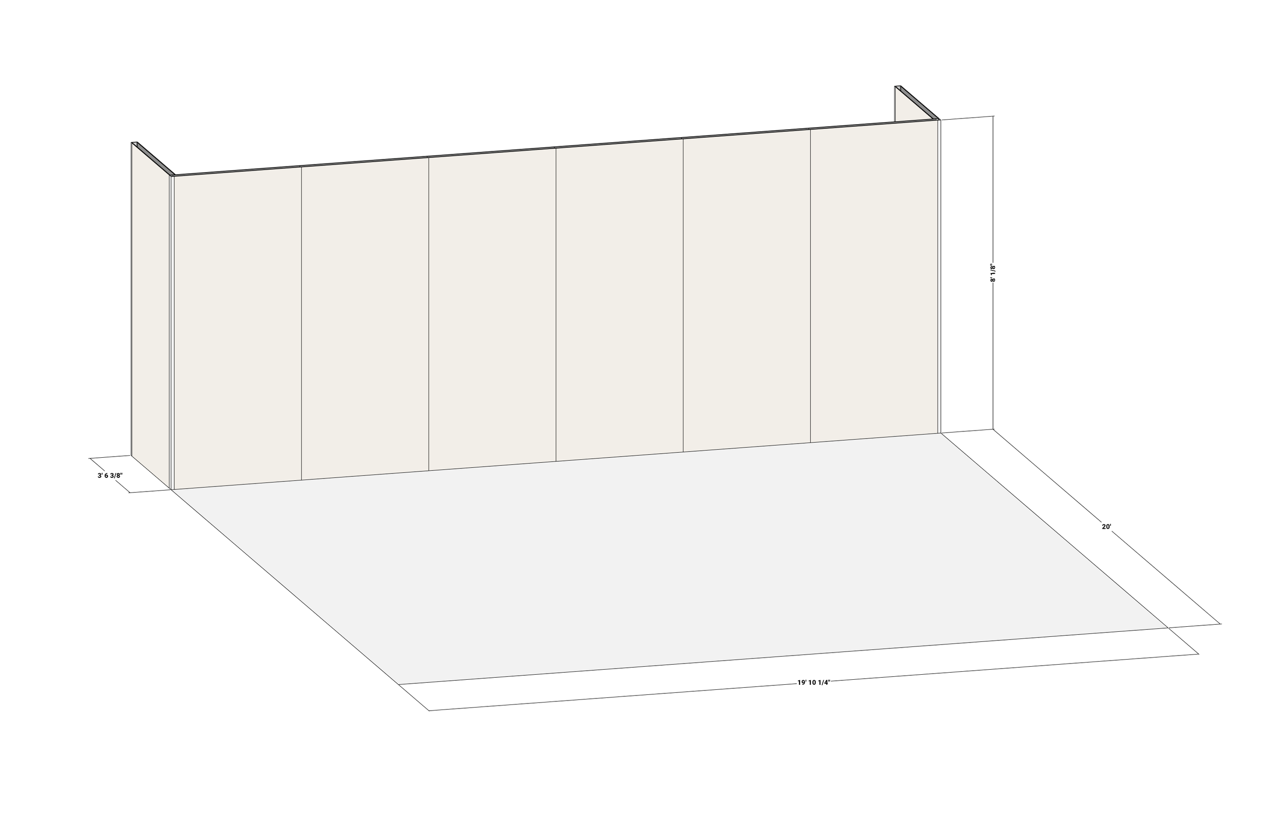 9’ 1 5/8” D x 19’ 6 1/4” W x 8’ H