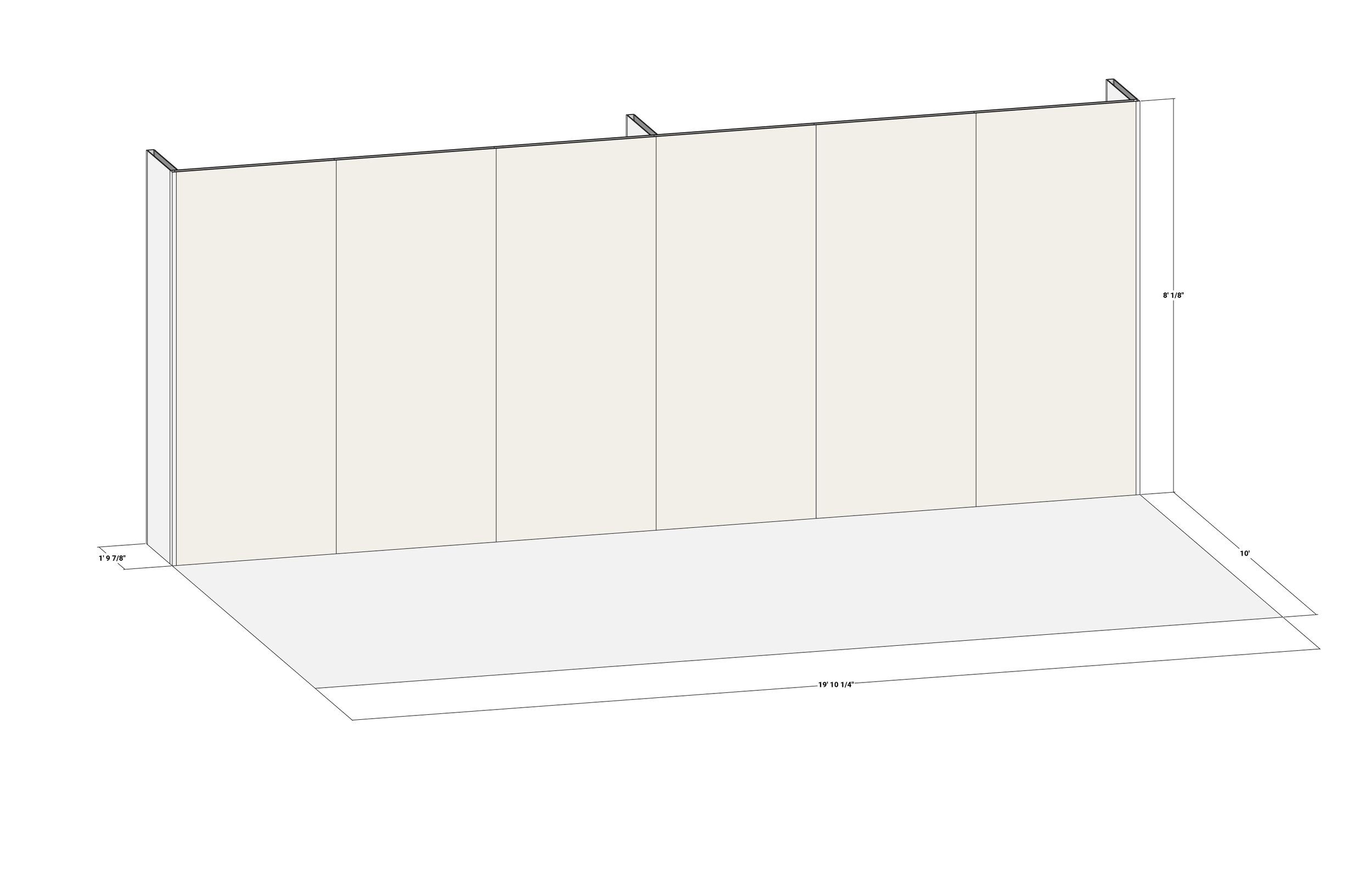 Exhibition Space of 10’ D x 19’6” W x 8’ H (See rendering above for exact dimensions)