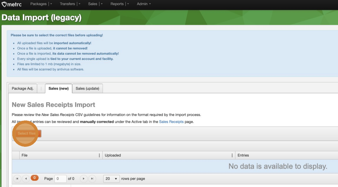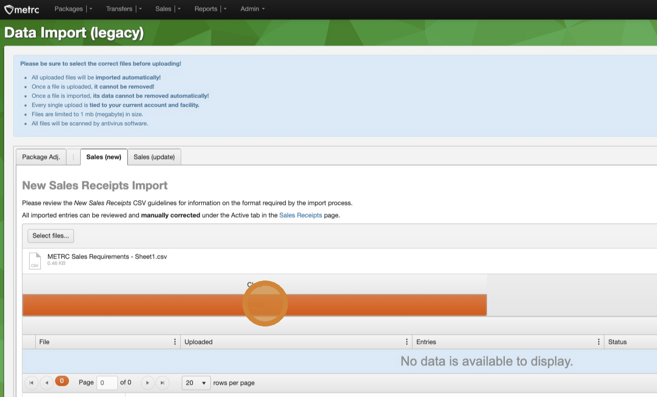 There are a variety of ways that records can be kept throughout the event as outlined in “In-Booth Retail Sales” with all sales requiring input and recording into METRC within 24 hours of a transaction. We have included instructions on individual sales entries as well as batched uploads using the Import New Sales function from spreadsheet tracking.